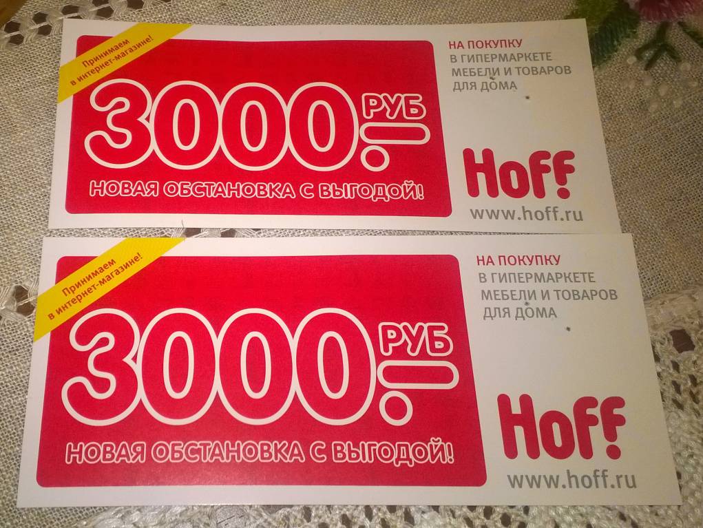 Продам купоны на скидку в интернет-магазин и сеть гипермаркетов Хофф.