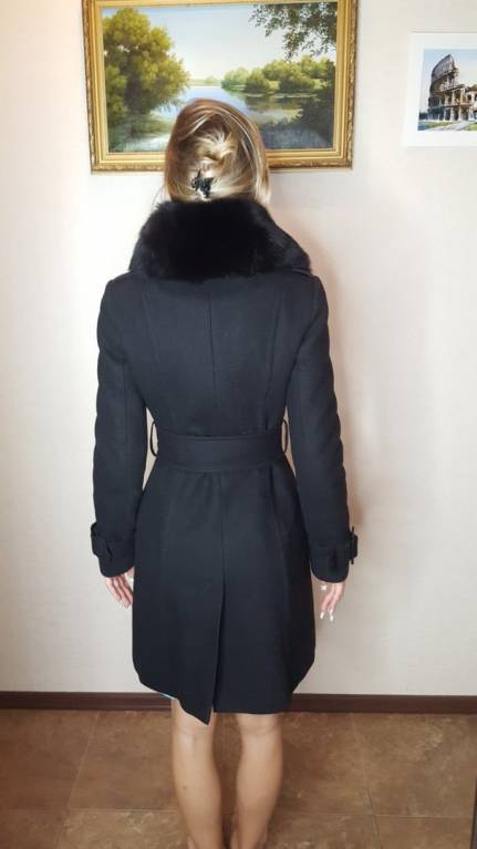 Отдам дизайнерское зимнее пальто черного цвета за символическую плату 1000р. Драповое+шерсть, утепленное (стеганый подклад), двубортное, со съемным роскошным воротником из крашенного черного песца.